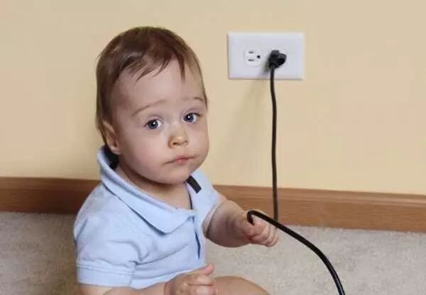 而刚会走的宝宝很喜欢拉扯电线或窗帘绳,孩子力道不够让电线半挂在插头上,容易触电。家中所有的线类都应加以固定,插座应加装遮盖。