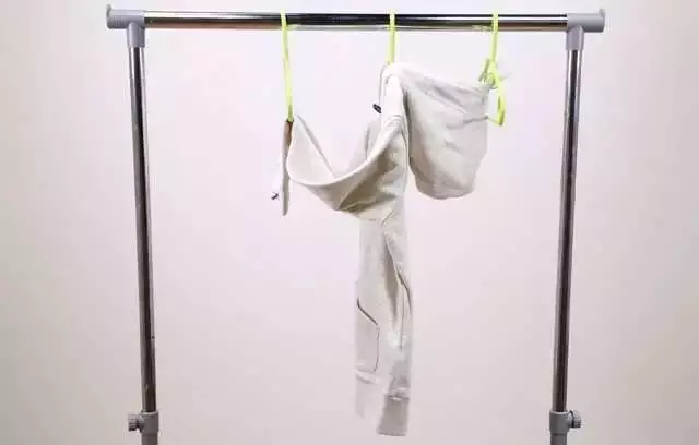 裤子可用圆形衣架撑成筒状,裤管也撑开,方便空气流通,可以干的更快。